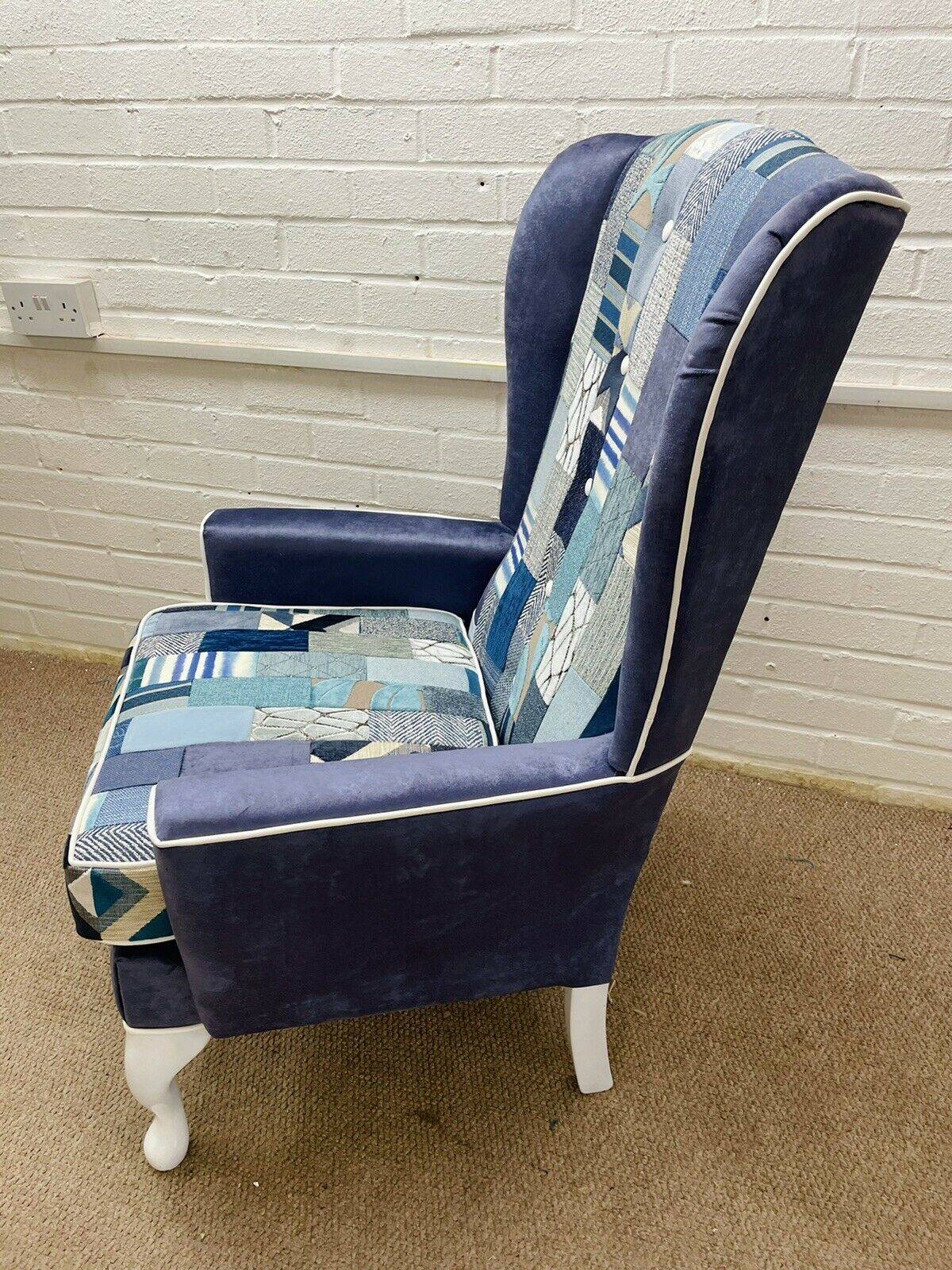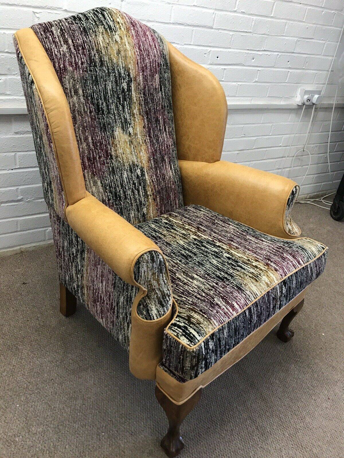 Vintage Duresta Wing Back Chair fully refurbished in Leather and Velvet