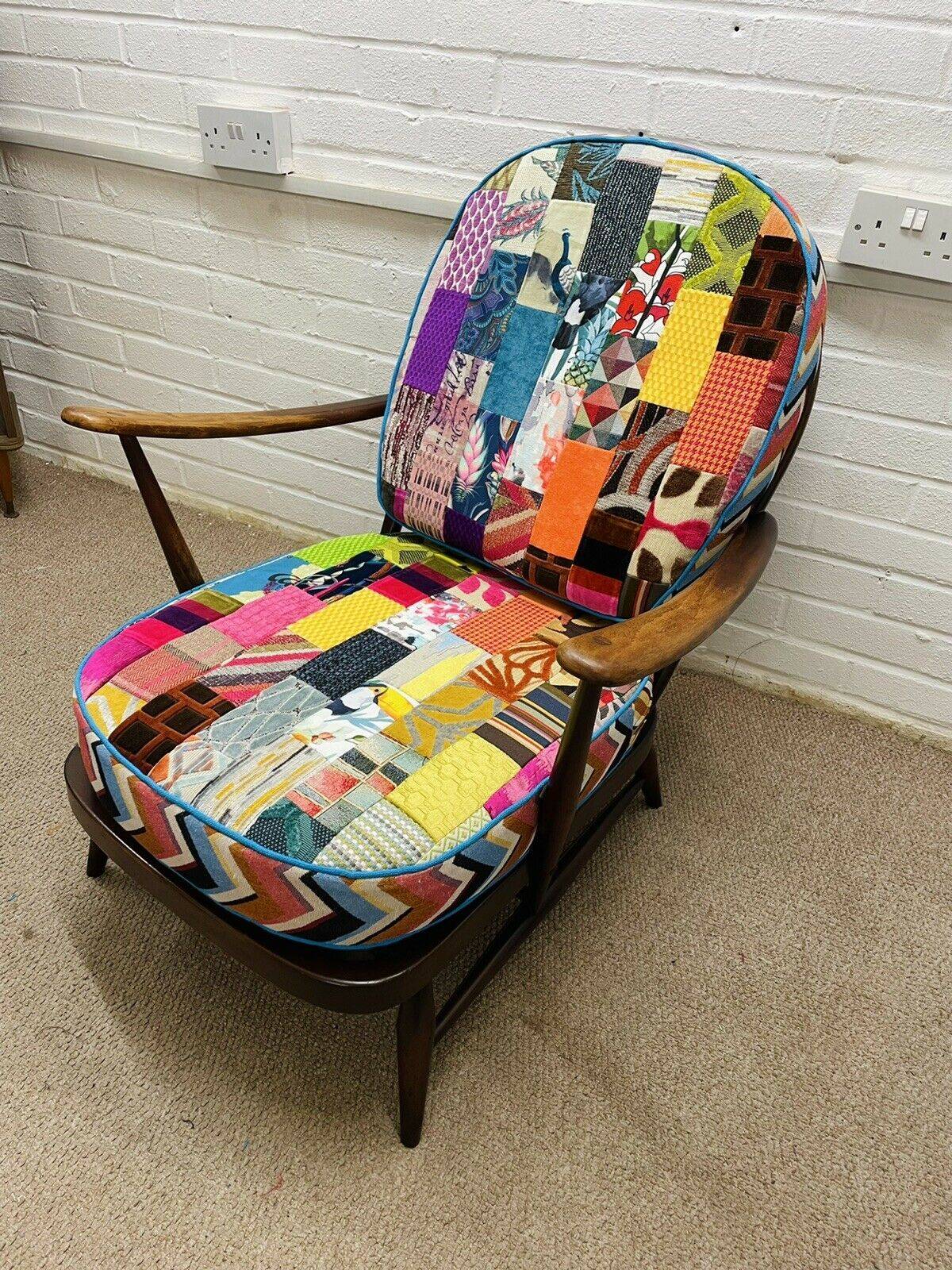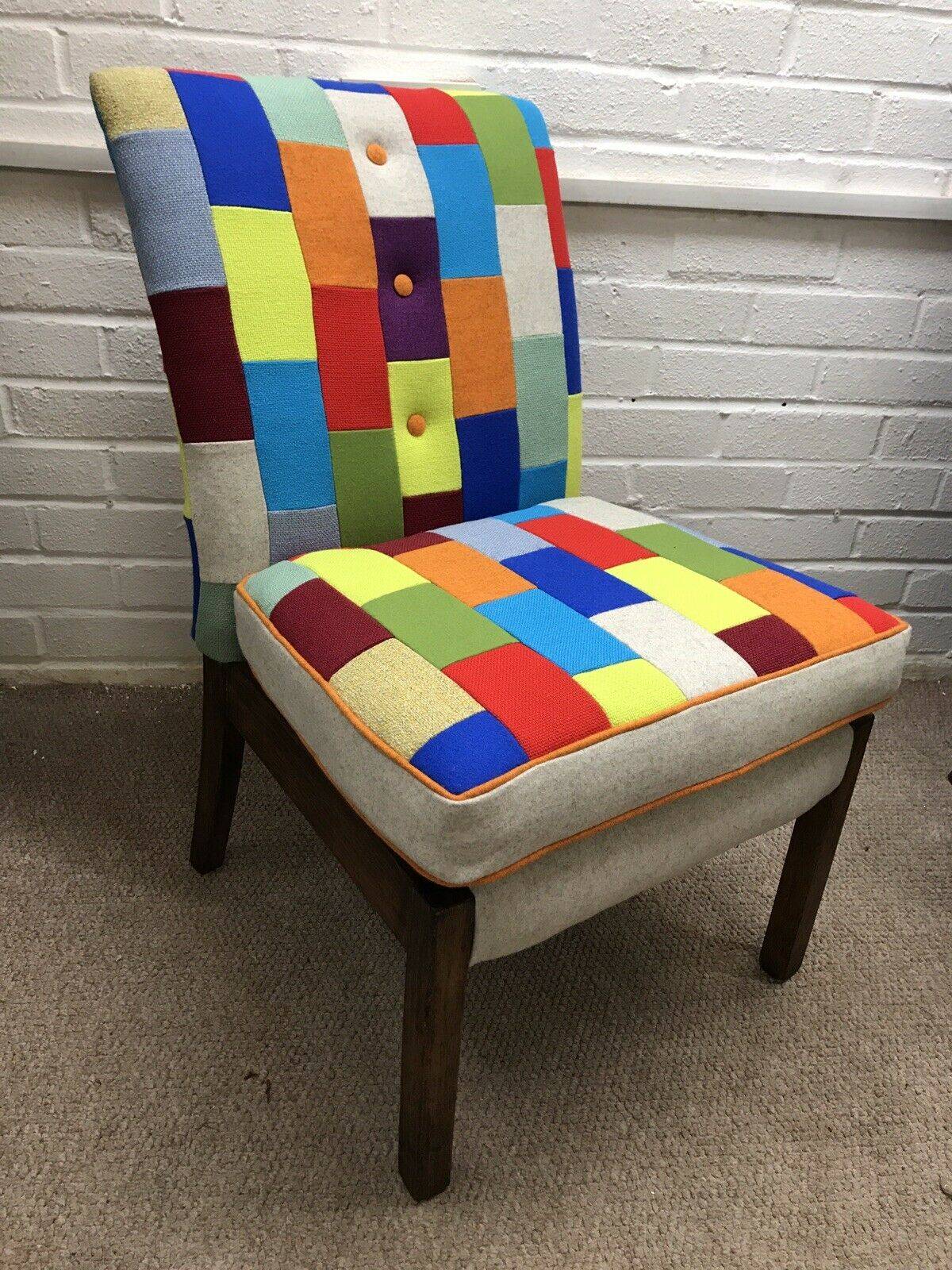 Newly Upholstered Small Bedroom Chair In New Zealand wool and Patchwork Design