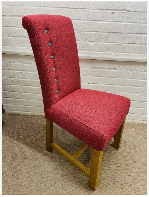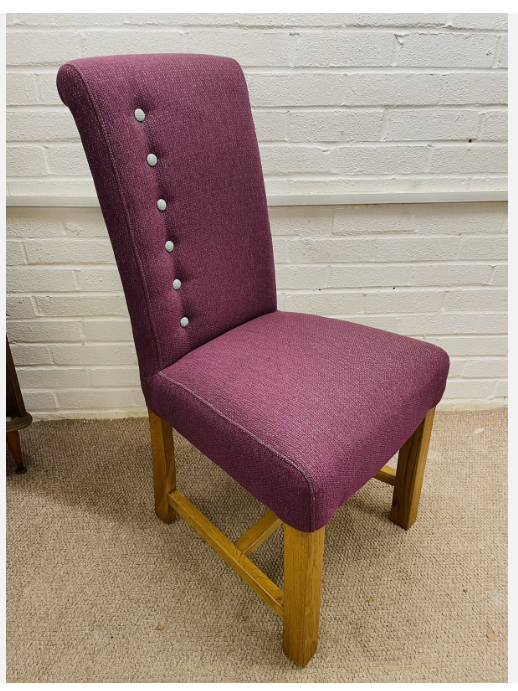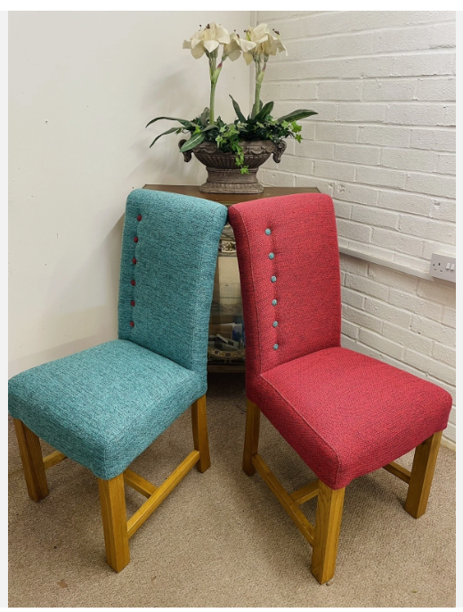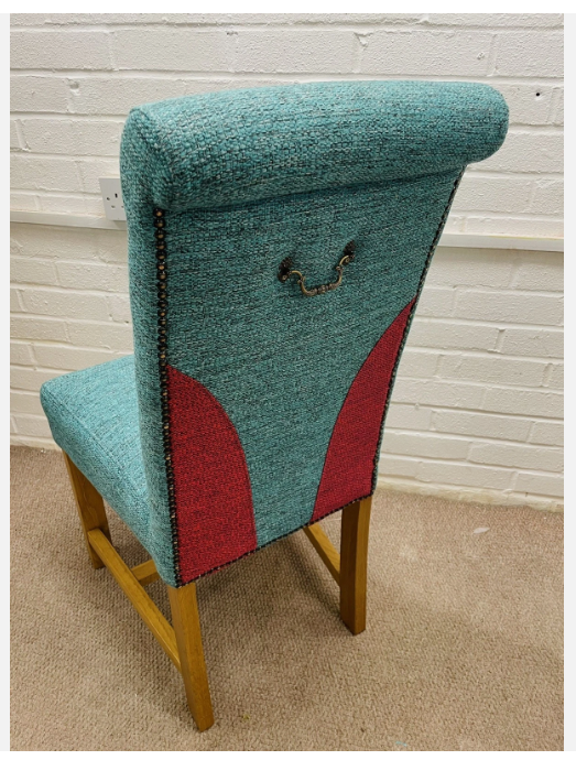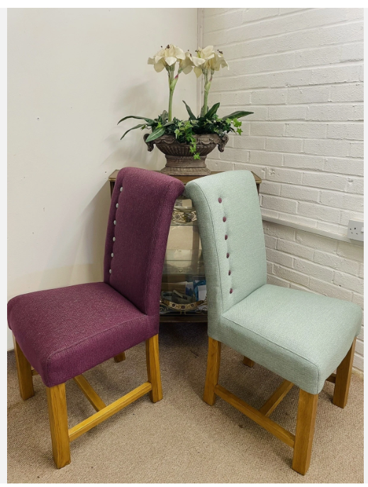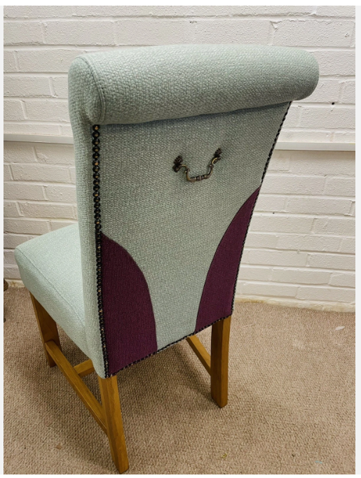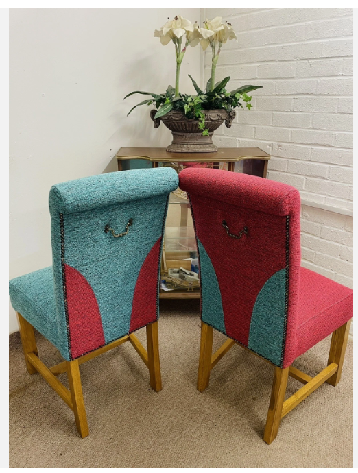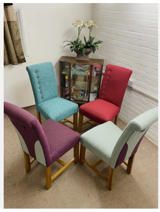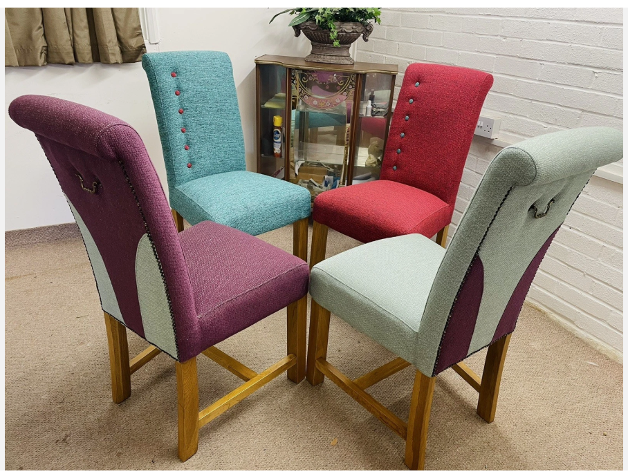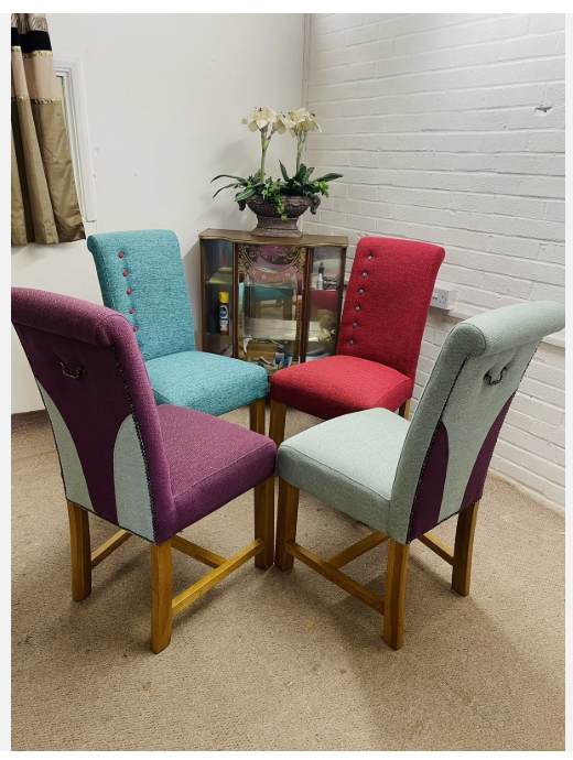 Newly professionally reupholstered 4 dining chairs from Ashton & Coleman Furniture.